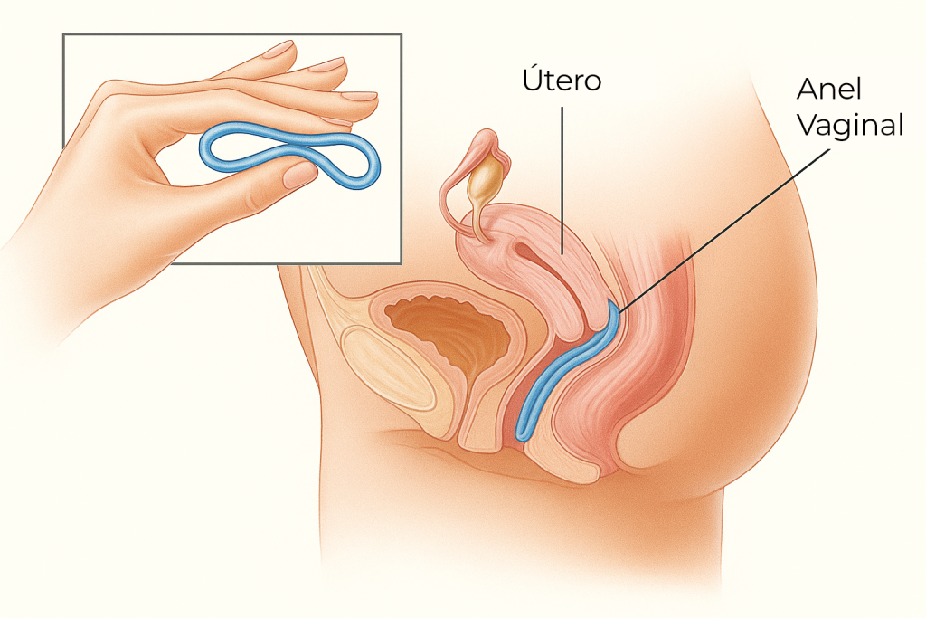 - Anel vaginal: libera hormônios localmente e é trocado mensalmente. Indicado para quem busca praticidade sem doses diárias.