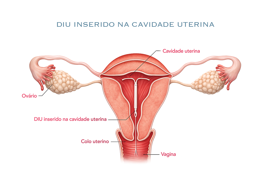 Método de longa duração (5 anos), que libera pequenas doses de hormônio localmente. Reduz o fluxo menstrual e cólicas, sendo ideal para quem busca conforto e menor variação hormonal sistêmica.